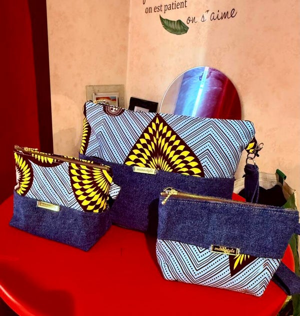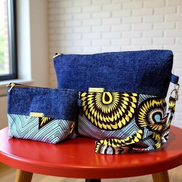 Trousses en jean et wax